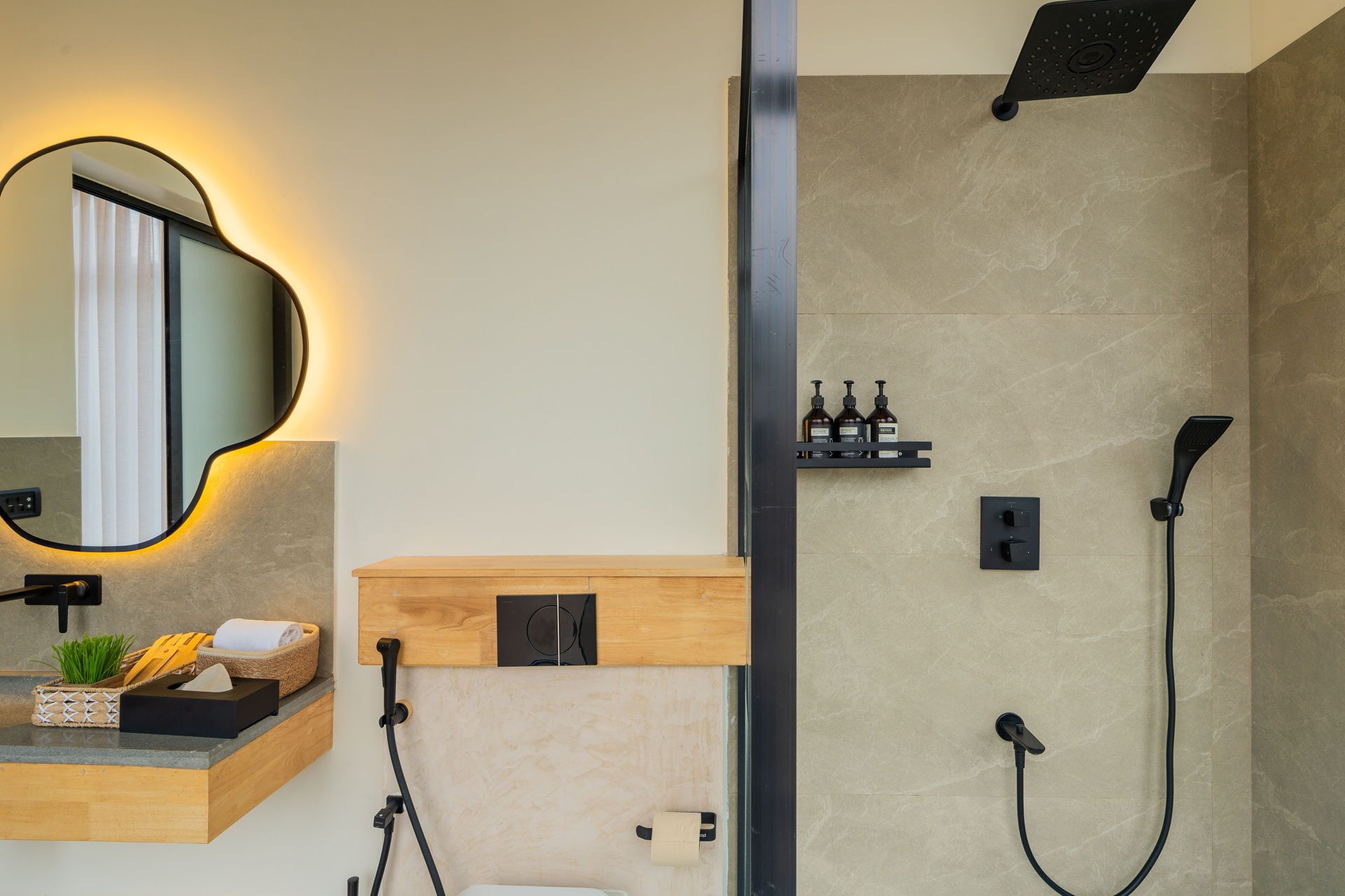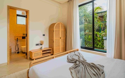 Each bedroom is elegantly designed with modern interiors, air-conditioning, and premium linens to ensure a restful stay. The villa’s living and dining spaces are perfect for intimate gatherings, while the fully equipped kitchenette allows you to enjoy